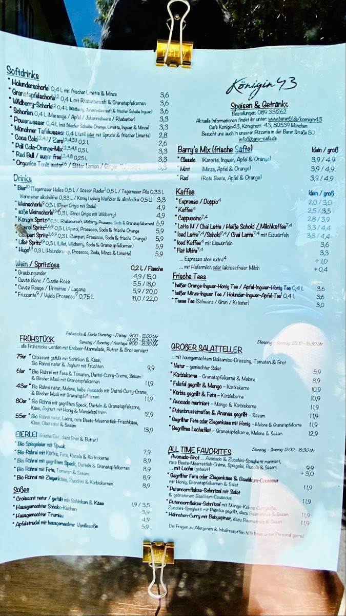 Introducing the menu at Cafe Konigin 43, a delightful establishment nestled in the heart of Munich on Koniginstraße 43. This cozy café offers a culinary journey that marries comfort with creativity, making it an ideal spot for breakfast or brunch.